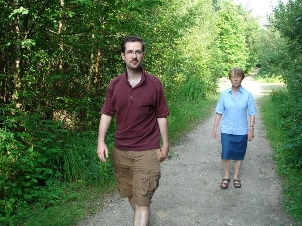 Stéphane and his mum are having a little walk through the woods near L'Etang-la-Ville (July 2006).