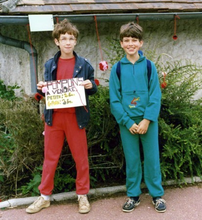 Stéphane and Vincent (Mongalvy) sell bobbles on the l’Etang la Ville market place (June 1987).
