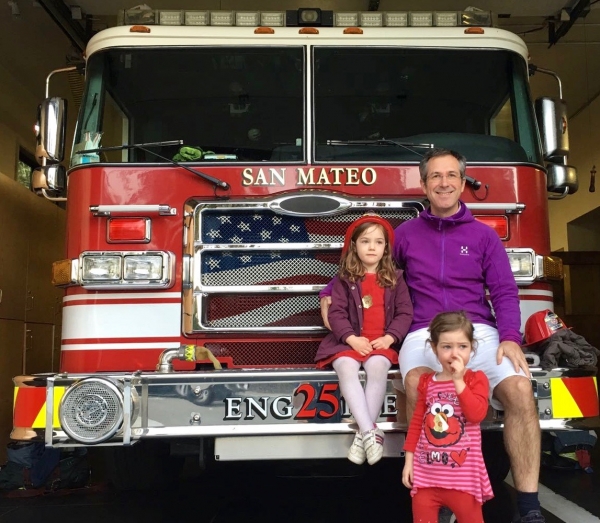 Stéphane, Joséphine and Éléonore at the San Mateo firestation (15th February 2018).