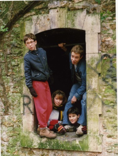 Stéphane, Nicolas, Sonya and Marc are in the Noisy Fort (« Forêt de Marly », Christmas 1987).