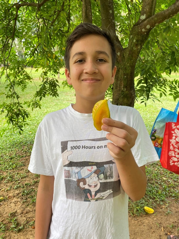 Sylvain a cueilli un fruit du dragon (près de l’étang derrière nos maisons).