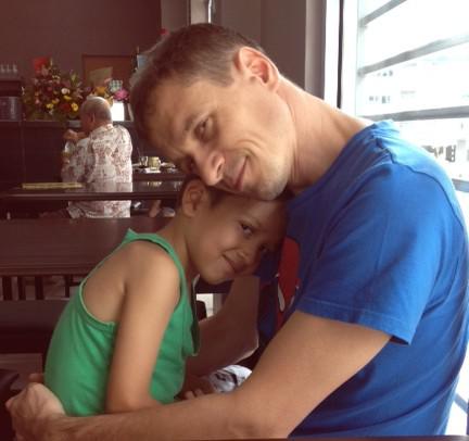 Sylvain dans les bras de son père (Cyberjaya, fin octobre 2013).