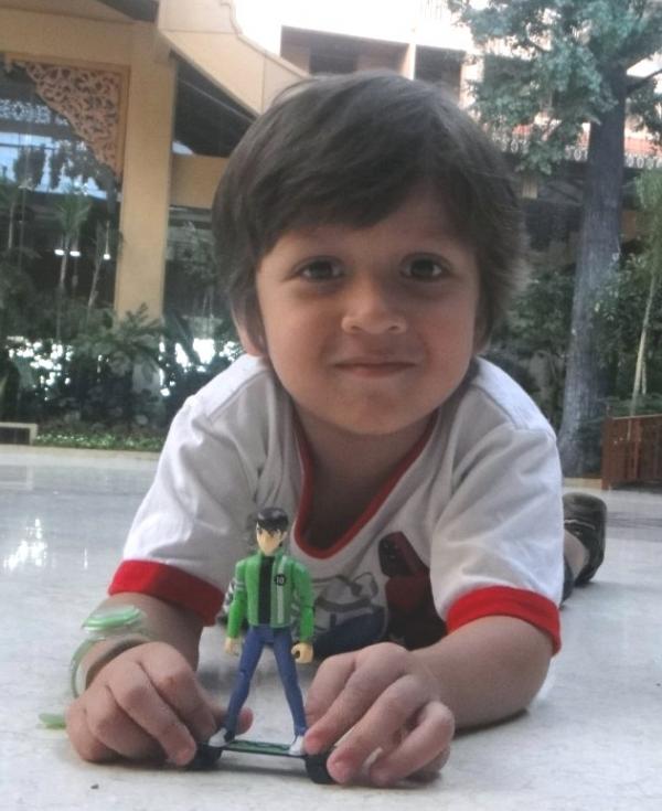 Sylvain is proud of his BenTen toy (February 2012, Kuala Lumpur).