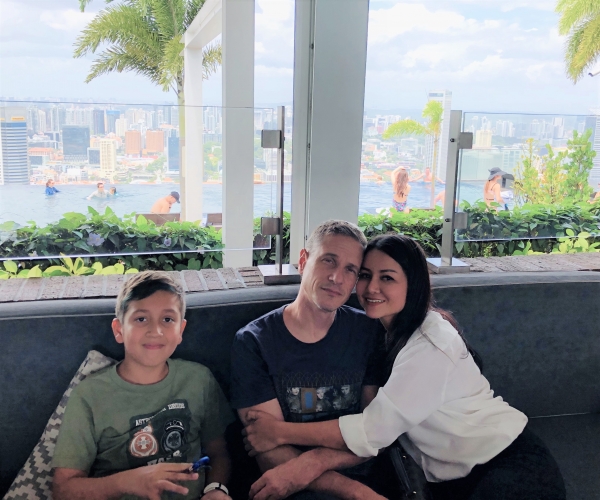 Sylvain, Jean-Yves et Kanda au sommet du « Skypark Marina Bay Sands » à Singapour (22 02 20).