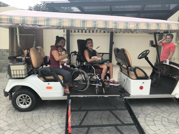 TESS, Katrina, Vincent and Bernard come back from a ride in the buggy (October 2020).