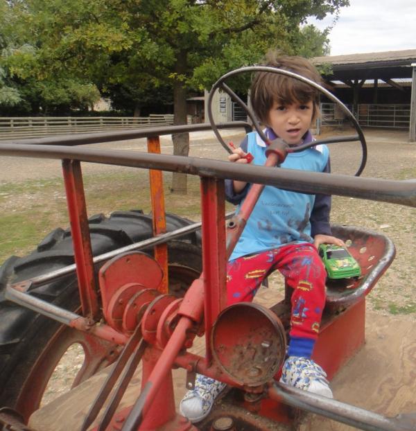 Vincent is driving a tractor! (Gally farm ,near l’Etang la Ville, July 2011).