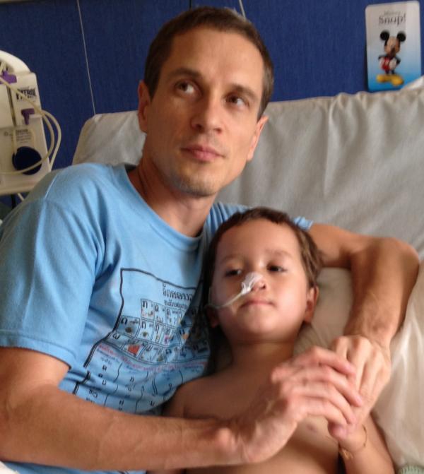 Vincent in the arms of Jean-Yves at the Pantai hospital (Kuala Lumpur, 27th July 2012).