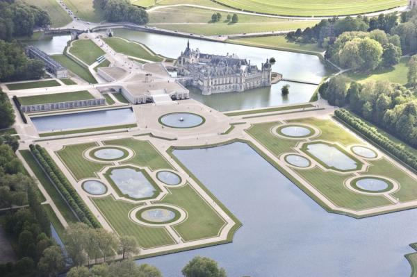 Aerial view of the Chantilly castle and parc.
