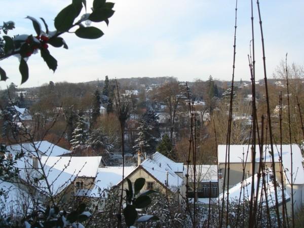Vue au dessus de l’Etang la Ville (chemin « au dessus des jardins ») lors d’une promenade un jour de neige (décembre 2010).