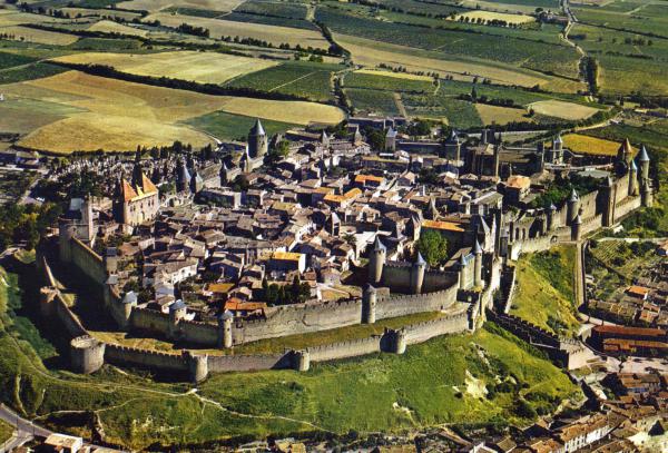 View of the « Carcassonne » medieval town taken from the air when I was flying there (May 1971).