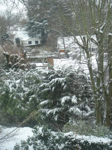 Vue de notre chambre un jour où il a neigé à l’Etang la Ville (décembre 2010).