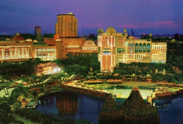 Vue générale de Sunway Lagoon le soir (Kuala Lumpur, décembre 2011).