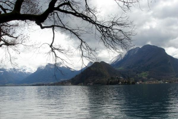 Vue sur le lac d’Annecy depuis l’Abbaye de Talloir (avril 2010).
